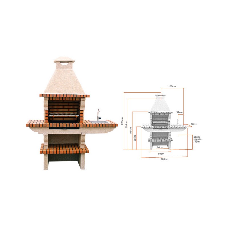 Barbacoa granito ref.CH11 con fregadero a la derecha y parrilla
