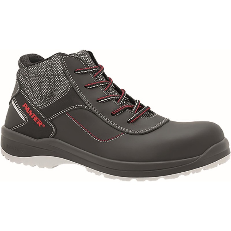 Bota de seguridad ergonómica, flexible y ligera, de diseño actual y cierre mediante cordones. Calzado ergonómico desarrollado a partir del 1º Estudio Funcional del Calzado en Confort y Ergonomía. Piel flor natural 1ª calidad transpirable con tratamiento hidrófugo + textil con rejilla de alta tenacidad y resistencia al deshilache. Puntera plástica anti-impactos (200J) y planta textil antiperforación (1100N), no metálicas. Certificado OEKO-TEX. Los tejidos utilizados para confeccionar este calzado están exentos de sustancias que puedan ser nocivas para las personas o el medio ambiente. Amplio tallaje de fabricación con hormas ergonómicas adaptadas a la fisonomía del pie femenino y masculino. Suela con diseño especial antideslizante y con sistema de absorción de energía en el talón. Nueva Tecnología “OPTIMAL SOLE”. Mayor ligereza, estabilidad y aprovechamiento de la amortiguación en la pisada de entrada para impulsar el siguiente paso. Plantilla antiestática completa y antibacteriana. Protección del tobillo sobredimensionada con acolchados antirrozaduras.