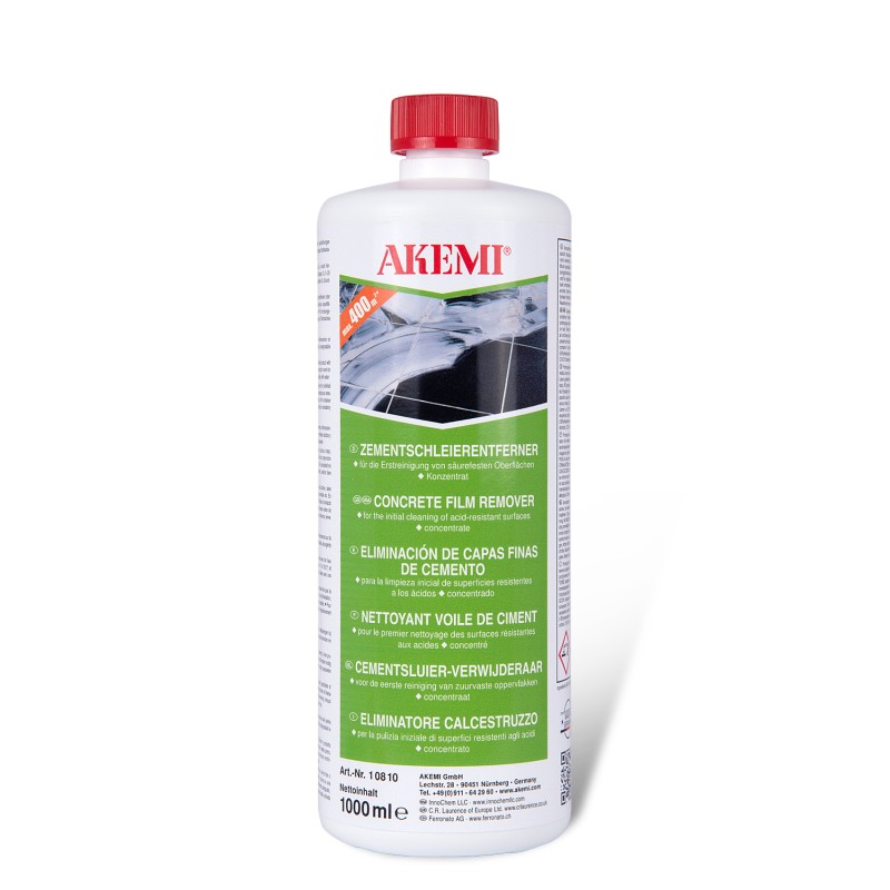 Para la eliminación de residuos de cemento, mortero y cal, así como de capas de cuidado y residuos de mortero de juntas modificado con plástico sobre superficies resistentes a los ácidos de gres porcelánico, piedra natural, clínquer, cerámica y similares. ¡No es apto para piedra caliza u otras superficies sensibles a los ácidos!