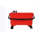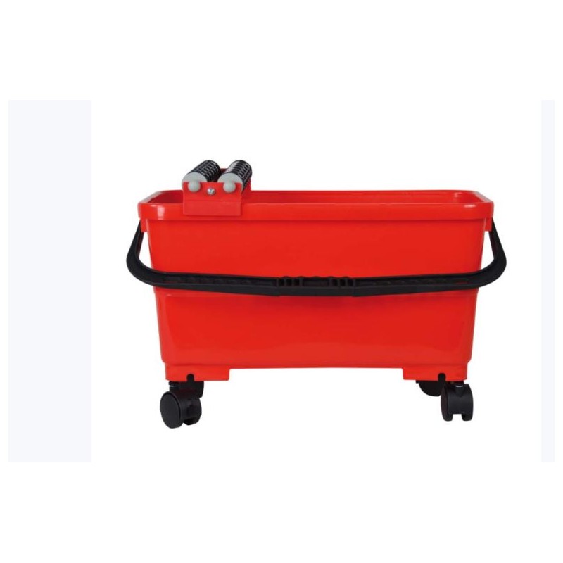 Cubeta plástico, ligera y de alta resistencia, con 2 rodillos escurridores y sistema de separación-decantación de aguas sucias. Incorpora ruedas y asa para el transporte. Capacidad máxima: 24 litros. Capacidad útil: 19 litros. Dimensiones: 52 x 27 x 30 cm. Servida montada en caja unitaria.