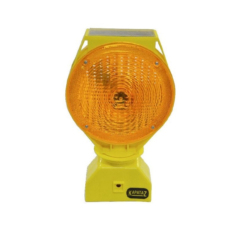 Con 3 diodos de larga duración (LED) en cada cara y batería que se recarga con luz solar. Con abrazadera metálica antirrobo, llave de encendido y célula fotoeléctrica de encendido crepuscular automático. Con 8 horas de exposición solar la baliza funciona 42 h. Doble opción de uso: con luz parpadeante o fija. Parpadeo: 65-75 flash/minuto.