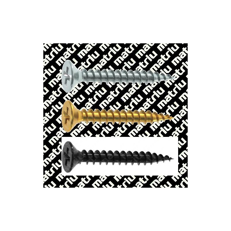 Tornillo para la madera con cabeza avellanada y huella pozidrive. Es el tornillo adecuado tanto para unir tableros o listones de carpintería entre si como para atornillar piezas y herrajes de metal a la madera. Con tratamiento térmico que aporta mayor dureza.