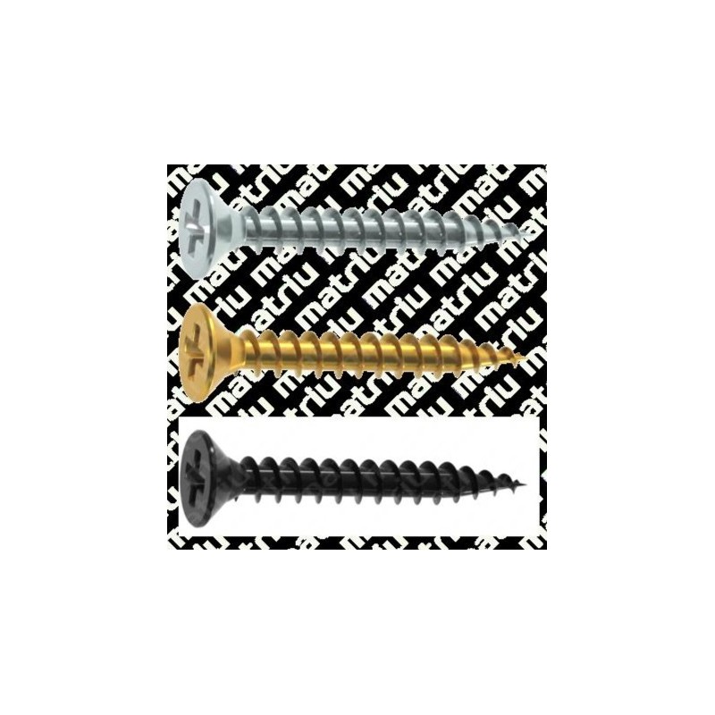 Tornillo para la madera con cabeza avellanada y huella pozidrive. Es el tornillo adecuado tanto para unir tableros o listones de carpintería entre si como para atornillar piezas y herrajes de metal a la madera. Con tratamiento térmico que aporta mayor dureza.